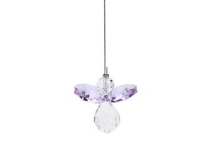 Broušené sklo nádherně zachytává a odráží světlo, takže při každém pohybu vykouzlí jemné odlesky fialové a čiré barvy. Díky tomu se andílek stává nejen dekorací, ale i malým světelným talismanem.