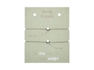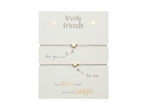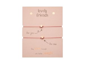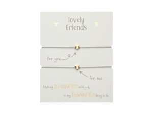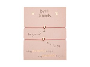 Náramky jsou upevněny na dárkové kartičce s nápisem for you a for me. Tento detail symbolicky vyjadřuje propojení dvou lidí – jeden náramek si necháte pro sebe a druhý věnujete někomu blízkému. Lovely Friends tak nejsou jen ozdobou, ale i krásným symbolem přátelství, lásky nebo vzájemné podpory.