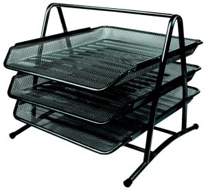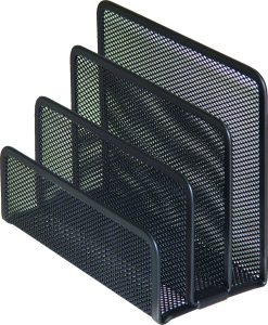 Kovový stojan s přihrádkami je elegantním doplňkem do kanceláře a home office. Pevná a stabilní konstrukce.