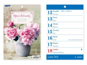 Trhací kalendář 2026 ve formátu A5 nabízí přehledné týdenní listy s dostatkem prostoru pro každodenní orientaci. Každá stránka zahrnuje celý týden s českými jmény, daty, svátky, a informacemi o východu a západu slunce. Úvodní stranu zdobí jemný květinový motiv, který dodává kalendáři decentní a elegantní vzhled. Praktický pomocník do domácnosti i kanceláře – jednoduchý, přehledný a osvědčený.