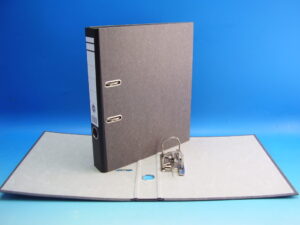 štítek na hřbetu, páková mechanika, prstokroužek, radokroužek, kovová lišta, černý hřbet