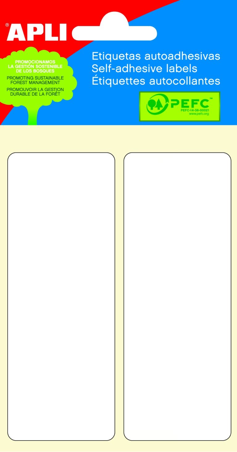 Bílé samolepicí etikety v obdélníkovém tvaru.