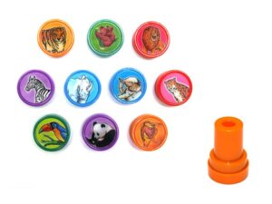 Dětské samonamáčecí razítko z plastu - kulaté - Nakresli si obrázek a vyzdob ho razítky se zvířátky!