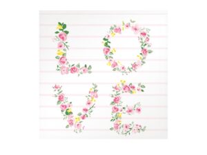 Třívrstvý papírový ubrousek. Krásné kvalitní ubrousky s nápisem „LOVE“ z růží vykouzlí příjemnou atmosféru. Ideální na zahradní prostírání, oslavy nebo na zkrášlení interiéru.