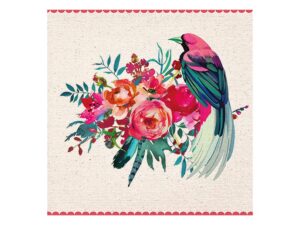 Třívrstvý papírový ubrousek. Krásné kvalitní ubrousky s motivem ptáka a květin vykouzlí příjemnou atmosféru. Ideální na zahradní prostírání, oslavy nebo na zkrášlení interiéru.