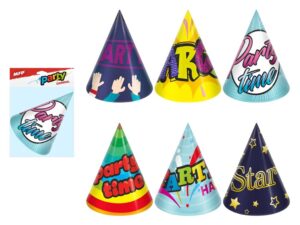- 6 ks barevných kloboučků s různými párty motivy