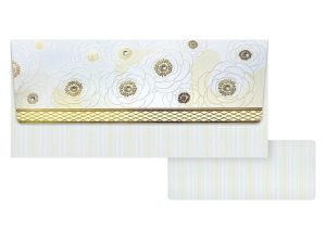Obálka na peníze s romantickým motivem květů magnólie v jemné růžové barvě je ideální volbou pro darování finančního obnosu na zvláštní příležitosti, jako jsou svatby, narozeniny nebo výročí. Obálka obsahuje kartičku pro případný vzkaz, přání či osobní věnování, čímž dodá vašemu daru osobní nádech. Uzávěr na přední straně spolehlivě zajistí, že obsah zůstane bezpečně uložen.