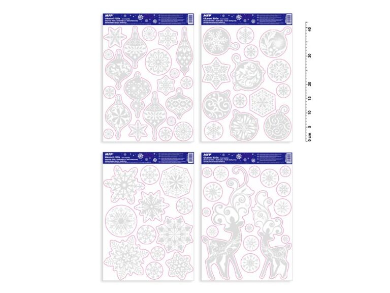 Vánoční okenní fólie s motivy vánočních ozdob s glitrem. Vyzdobte si okno těmito krásnými