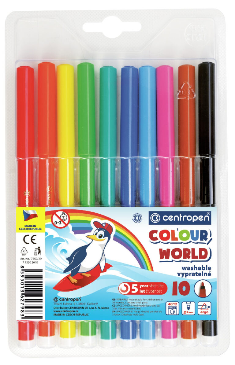 Kvalitní barevné fixy s ventilačním uzávěrem a vláknovým hrotem odolným vůči zatlačení. Mají klasický