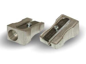 Hliníkové, školní ořezávátko/strouhátko bez zásobníku na odpad. Ořezávátko patří do nezbytné výbavy každého školáka! Ořezávátko má 2 otvory. Břity jsou připevněné šroubkem, takže jdou demontovat a nabrousit.