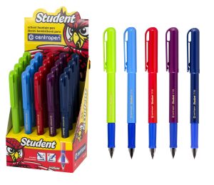 20/ školní bombičkové pero, ERGO držení, modrý zmizíkovatelný inkoust, hrot s iridiovou kuličkou, tenká rovnoměrná stopa písma 0,3mm, mix barev