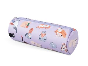 Fialová etue s veselým potiskem koček, které si dělají, co chtějí – některá spí, jiná kouká, další se schovává a dohromady tvoří partu, která Vám zpříjemní každý den.