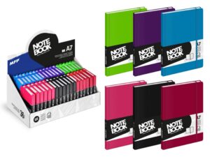 Linkovaný poznámkový blok A7 se zaoblenými rohy. Nezbytná školní a kancelářská pomůcka! Zápisník je opatřený gumičkou proti samovolnému otevření a záložkou.Na vnitřní zadní straně je papírová kapsička.