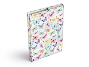 Školní desky na sešity ve formátu A4 s motivem barevných motýlků jsou nezbytnou součástí vybavení každého školáka. Desky jsou vyrobeny z kvalitního lepenkového kartonu potaženého laminem, který spolehlivě chrání sešity a další školní potřeby před poškozením. Díky praktické gumičce drží obsah bezpečně uvnitř, takže se sešity ani pracovní listy nepomačkají a zůstanou vždy v pořádku. S těmito veselými deskami bude každý den ve škole o něco zábavnější!