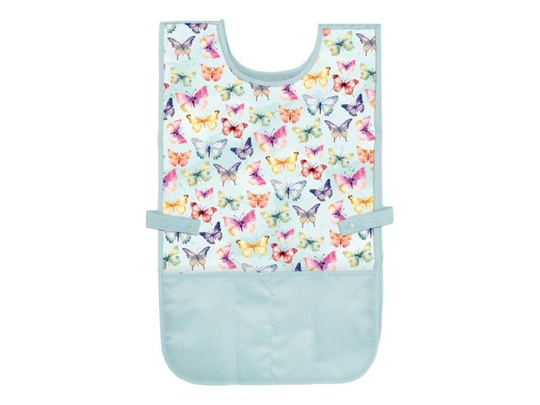 Dětská zástěra s motivem barevných motýlků přináší kouzlo hravosti do každé činnosti. Díky dvěma úrovním zapínání na druky po stranách se snadno přizpůsobí a dokonale padne. Pohodlné oblékání přes hlavu umožní dětem snadno si ji obléknout i svléknout. Praktické kapsy ve spodní části poslouží na štětce, pastelky nebo jiné drobnosti, které je třeba mít po ruce. Odolný a snadno omyvatelný materiál zajišťuje, že zástěra vydrží i ty nejkreativnější nápady.