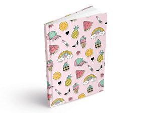 Záznamová kniha MFP ve formátu A6, linkovaná, s motivem veselých a hravých symbolů léta a zábavy jako jsou melouny, ananasy, zmrzliny, duhy, kšiltovky, rtěnky a další. Je perfektním společníkem pro každodenní poznámky, zápisky nebo kreativní nápady. Díky kompaktním rozměrům ho snadno uložíte do kabelky či batohu, takže ho můžete mít vždy po ruce. Díky vazbě V8, známé svou mimořádnou pevností, zůstanou stránky bezpečně na svém místě i při častém používání.