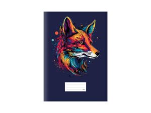 Školní sešit LUX ve formátu A4 s výrazným motivem lišky v zářivých barvách na tmavém podkladu je nejen praktickým, ale i stylovým doplňkem vaší školní výbavy.