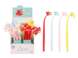 Gelové pero Fancy - Lighting fish s modrou náplní a hravým designem inspirovaným rybkou s lampičkou. Pero má na horní části originální postavičku „svítící ryby“, která dodá psaní zábavný prvek. K dispozici je v několika pastelových barvách, jako je modrá, růžová, červená a žlutá. Jemný hrot s šíří stopy 0,5 mm zajišťuje plynulé a pohodlné psaní, takže je ideální pro poznámky, kreslení nebo deníkové zápisy. Pero je vybaveno víčkem pro ochranu hrotu před poškozením a má tělo z pružného, odolného plastu, příjemného na držení.