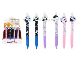 Gumovací kuličkové pero s motivy roztomilých zvířátek. Pero má jemný hrot o tloušťce 0,5 mm a speciální inkoust, který lze snadno vymazat pomocí integrované gumy na konci. Toto pero je ideální pro školní použití, psaní poznámek nebo tvoření deníčků, kde oceníte možnost opravit chyby bez potřeby korektoru. Kombinace funkčnosti a veselého motivu dělá z tohoto pera zábavný a praktický doplněk do každého penálu.