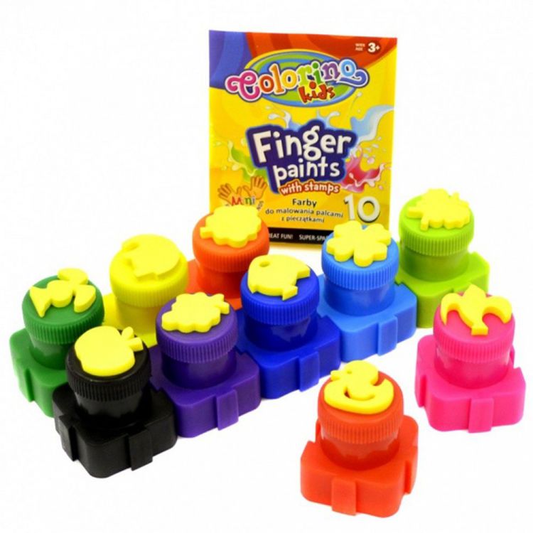 Skvělá zábava pro nejmenší malíře. Snadné nanášení barev přímo prsty. Na každém víčku je umístěno pěnové razítko s motivem pro vytvoření obrázku. Sada barevných kelímků ve stylu puzzle.