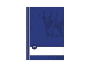 Školní sešit čistý bez linek ve formátu A5, v tmavě fialové barvě, s motivem slona, v deskách z křídového papíru.