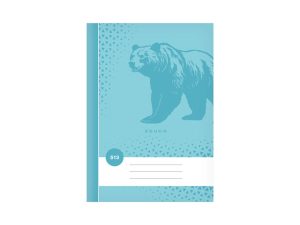 Školní sešit s linkou ve formátu A5, v tyrkysové barvě, s motivem medvěda, v deskách z křídového papíru.