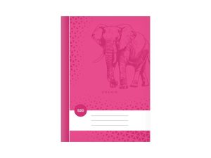 Školní sešit čistý bez linek ve formátu A5, v tmavě fialové barvě, s motivem slona, v deskách z křídového papíru.