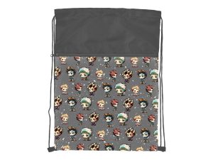 Školní sáček na přezůvky se šňůrkou na stažení ve tmavě šedé barvě s motivem anime maskotů. Na přední části má praktickou kapsu na zip, která oddělí boty od ostatního oblečení. Pořiďte svým dětem školní vak na přezůvky nebo cvičební úbor. Od této chvíle totiž děti nemusí hledat přezůvky po celé šatně, ale mají je na jednom místě.