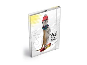 Školní desky na sešity ve velikosti A5 s motivem surikaty. Nezbytná součást vybavení každého školáka. Díky školním deskám budou všechny sešity a učebnice pohromadě a neponičené. V nabídce také desky na číslice a abecedu ve stejném motivu. Tyto desky na sešity jsou opatřeny gumou, která zabraňuje samovolnému otevření. Heft box je vyroben z kvalitního lepenkového kartonu, potaženého laminem. Z tohoto důvodu se dá velice lehce udržovat.
