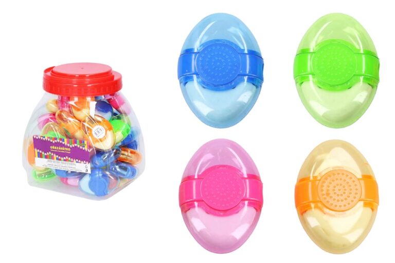 Ořezávátko na jednu tužku s gumou. Nezbytná součást školáka nebo kanceláře. Barva: modrá, zelená,