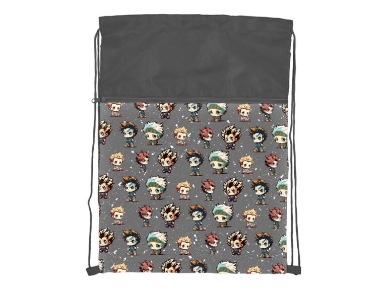 Školní sáček na přezůvky se šňůrkou na stažení ve tmavě šedé barvě s motivem