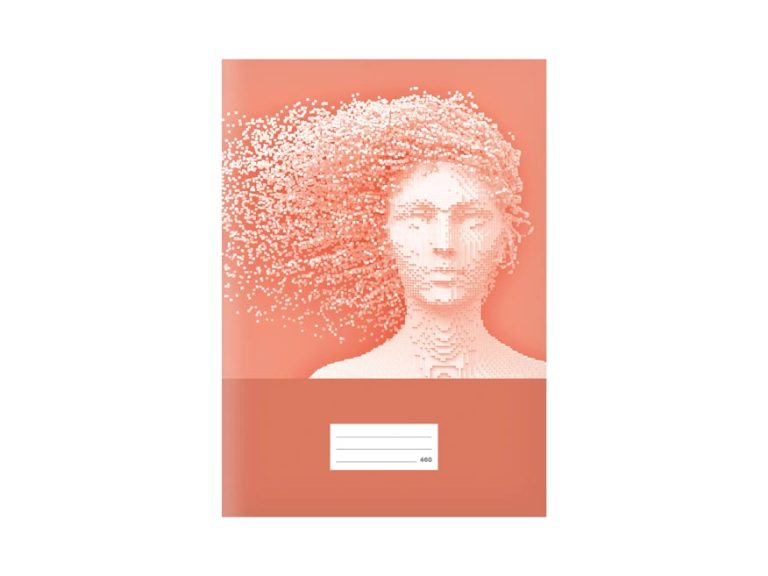Elegantní motiv digitální tváře rozpadající se do tisíce drobných pixelů na jemném lososovém pozadí přináší nádech originality do každodenní školní rutiny. Čisté, nelinkované stránky jsou ideální pro strukturované zápisy, schémata, tabulky nebo jakýkoli jiný typ poznámek, který vyžaduje volnost
