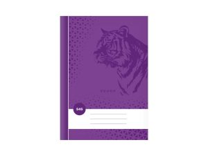 Školní sešit čtvereček ve formátu A5, v tmavě fialové barvě, s motivem tygra, v deskách z křídového papíru.