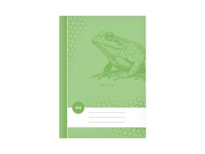 Školní sešit s linkou ve formátu A5, v zelené barvě, s motivem žáby, v deskách z křídového papíru. Sešit je určený především pro prvňáčky, kteří se začínají učit psát. Stránky jsou bez okrajů.