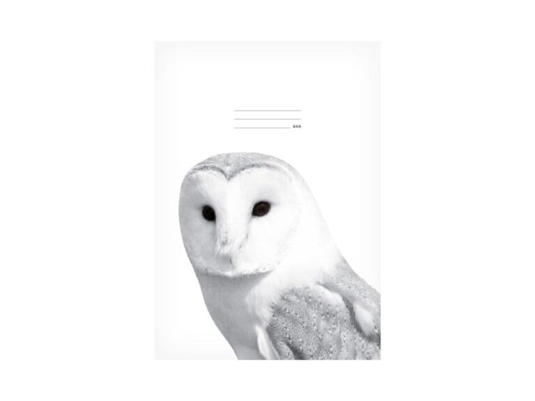 Školní sešit s linkou ve formátu A4, v zelené barvě, s motivem sovy, v