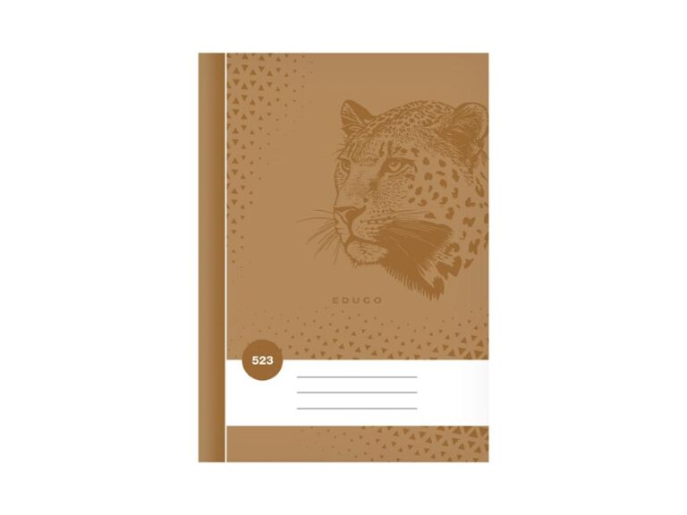 Školní sešit s linkou ve formátu A5, v hnědé, s motivem leoparda, v deskách