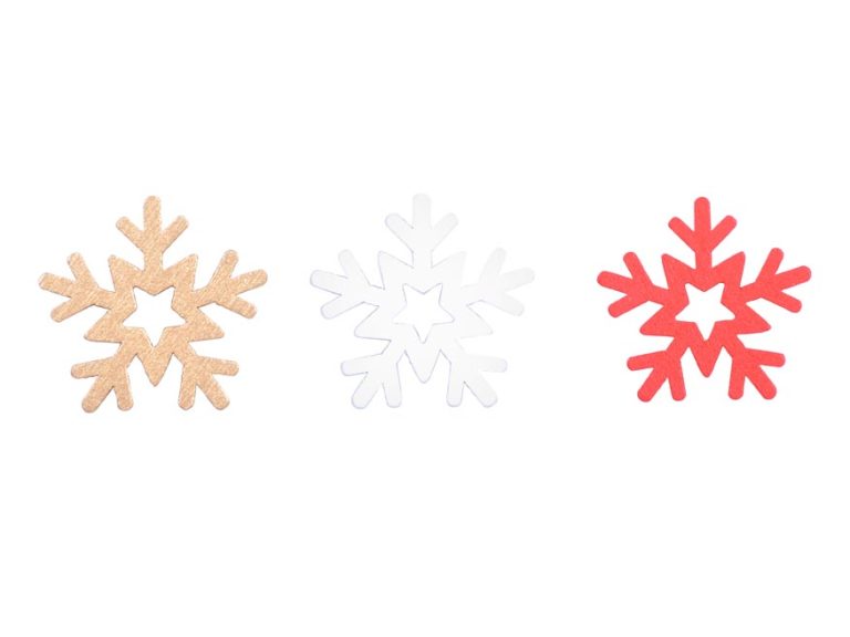 Vánoční dřevěná dekorace vločky v červené, stříbrné a zlaté barvě. Plánujete si udělat pohodové vánoční odpoledne a vyzdobit si dům? Dekoraci lze použít k aranžování věnců a různých doplňků do interiéru. Tahle krásná vánoční dekorace tak naladí vánoční atmosféru. Vyrobeno z překližky.