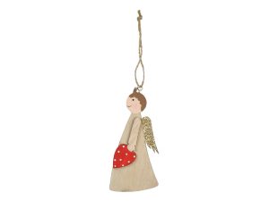 Vánoční dřevěná dekorace anděl srdce na zavěšení. Krásný závěs anděl, který drží červené srdce je opatřený provázkem na zavěšení. Můžete ho zavěsit na stromeček, do okna nebo na dveře. Zkrášlí tak váš interiér, a umocní vánoční atmosféru.