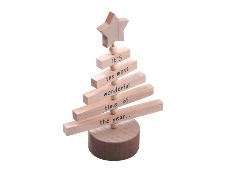 Vánoční dřevěná dekorace na postavení, stromeček v přírodní barvě s nápisem „It's the most wonderful time of the year“. Jednotlivá patra stromečku jsou otočná a je možné si ho dozdobit podle svých představ. Tato originální dekorace Vám pomůže vytvořit kouzelnou vánoční atmosféru.