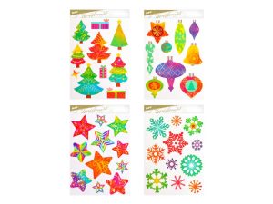 Vámoční okenní fólie glitrová s vánočními motivy v mixu barev. Pomocí okenních fólií si velmi snadno a rychle vytvoříte vánoční atmosféru na celé svátky. Fólie se lehce odlepují a nalepují a nezanechávají za sebou žádné stopy lepidla.