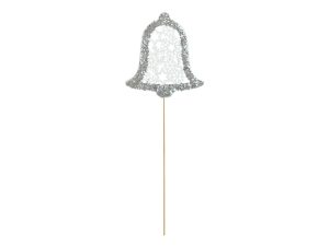 Vánoční dekorace, zápich zvonek v bílé barvě s glitrem. Ozdobte si květináč nebo jinou měkkou plochu touto oblíbenou dekorací. Vhodné do interiéru i exteriéru.