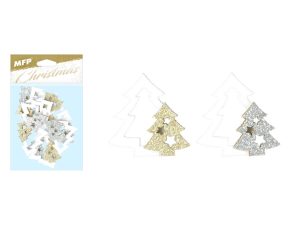 Dekorace stromky. Krásná vánoční dekorace v designu vánočních třpytivých stromečků, poslouží jako dekorace do interiéru, můžete s ní ozdobit stůl, věnec a všechno co vás napadne. Tahle krásná vánoční dekorace tak naladí vánoční atmosféru.
