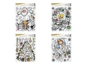 Vánoční okenní fólie glitrová s vánočními motivy. Fólie se lehce odlepují a nalepují a nezanechávají za sebou žádné stopy lepidla. Pomocí okenních fólií si velmi snadno a rychle vytvoříte vánoční atmosféru na celé svátky. Jsou vhodné na jakékoli hladké plochy, například sklo, výlohy, zrcadla nebo kachličky. Čisté, bez lepidla a opakovaně použitelné.