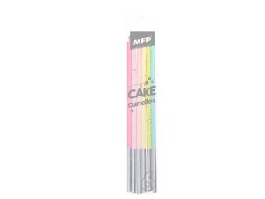 Sada dortových svíček o průměru 0,45 mm a výšce 140 mm v duhových pastelových barvách se stříbrnými kaňkami. Pořiďte oslavenci dortové svíčky, které dozdobí už tak dokonalý dort a splní oslavenci jeho tajné přání!