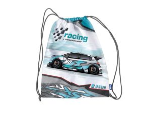 Školní sáček na přezůvky se šňůrkou na zatažení s obrázkem závodního auta. Pořiďte svým dětem školní vak na přezůvky nebo cvičební úbor. Od této chvíle totiž děti nemusí hledat přezůvky po celé šatně, ale mají je na jednom místě.