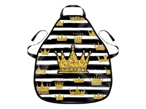 Dětská zástěra s motivem korunek. Vhodná do výtvarné výchovy, na domácí tvořeni, ale také na pomoc v kuchyni. Zástěra se zavazuje kolem pasu.
