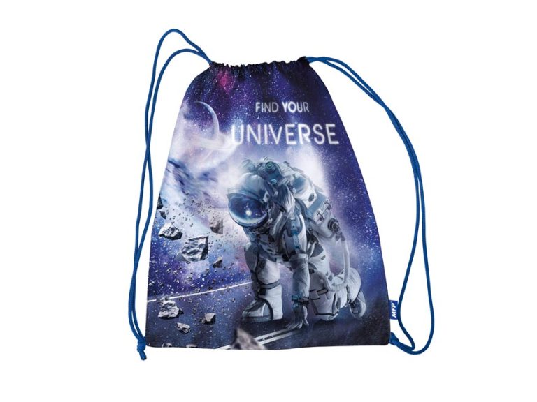 Školní sáček na přezůvky se šňůrkou na zatažení s motivem vesmíru. Pořiďte svým dětem školní vak na přezůvky nebo cvičební úbor. Od této chvíle totiž děti nemusí hledat přezůvky po celé šatně, ale mají je na jednom místě.