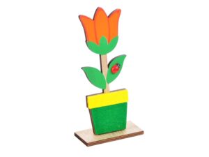 Velikonoční dekorace dřevěná - tulipán s beruškou - Vyzdobte si byt velikonočními dekoracemi a přivítejte tak svátky jara. Tato dekorace má podstavec, takže jí můžete umístit na komodu, jídelní stůl a doplnit ji velikonočními vajíčky nebo ji nechat jen tak samotnou na poličce.
