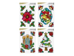 Vánoční okenní folie s vánočními motivy. Pomocí okenních fólií si velmi snadno a rychle vytvoříte vánoční atmosféru na celé svátky. Fólie neobsahuje lepidlo, jednoduše elektrostaticky přilne na čistém okně, zrcadle apod.