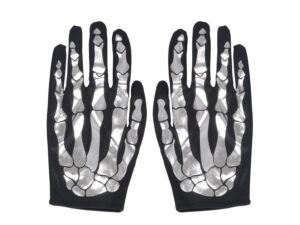 Černé rukavice s výrazným stříbrným potiskem kostry jsou ideální pro každého, kdo chce na Halloween či karnevalu zaujmout. Lesklé kosti kontrastují s tmavým podkladem, takže i jednoduchý kostým získá jedinečný vzhled.